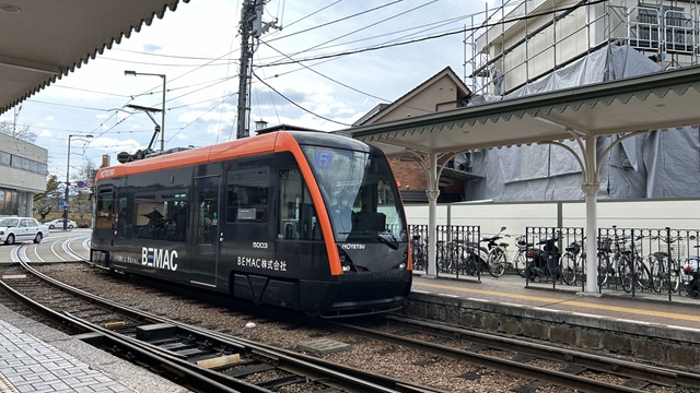 | その他の電車は、ミカン色に彩られた車両が走っています 市内を走っているバスもミカン色で関西でミカン色のバスを見かけると”伊予電バス”です。 |
