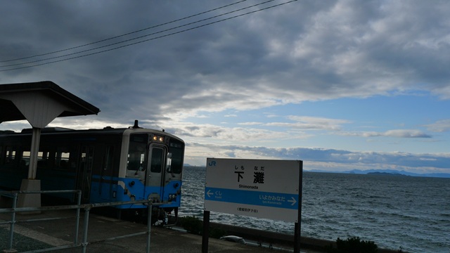 | “予讃線(愛ある伊予灘線)”の下灘駅 2014年3月15日から伊予市駅 - 伊予大洲駅間の海回り区間に「愛ある伊予灘線」の愛称が付けられている。 1935年に開業した下灘駅。当時はホームの下が海だったことから”日本で一番海に近い駅”と呼ばれていた。海とホームの間に国道378号が開通すると駅の利用者が激減し、更に国鉄民営化になり無人駅となり廃線も危ぶまれた。 宮崎駿ジブリ映画の『千と千尋の神隠し』のワンシーンで有名になり、テレビの“プレバト”の俳句の材題に取り上げられたり、写真が掲載されたりとその光景が隠れ観光名所になっています。 |