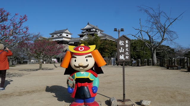 | 城主の『よしあき』君。同名なので親しみを感じました。 『よしあきくん』は、松山城築城400年祭を盛大に祝福するために松山城のマスコットキャラクターとして誕生されました。 名前の「よしあきくん」は松山城の初代城主 加藤嘉明(よしあき)にちなんで名付けられました。お城山からいつも松山の地を温かく見守っています。 松山城をはじめ“いで湯と城と文学のまち-松山-”を応援するため、積極的にお出かけしていきます! |