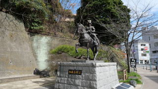 | 勝山の松山城にはロープウェイとリフトで登って行きます。訪れた時は清々しい天気でしたので上りがリフトで下りにロープウェイを利用しました。 加藤嘉明の騎馬上像 |