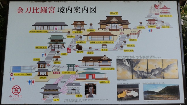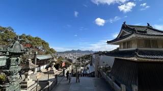 | 金比羅山の石段は、大門までが 大門を潜ると200mの長い石畳の参道を進みます。参道は“桜の馬場”と呼ばれていて、春には桜の参道になるのでしょう。参道の先から、石段があります。 大物主神は日本の国造りに励まれた神さまで、当宮が鎮座する琴平山はその拠点と伝わります。 この由緒地に創建されたのが当宮です。古くは「琴平社」あるいは「琴平神社」と呼ばれていました。 「保元の乱」と呼ばれる平安末期の政治抗争に巻き込まれ、讃岐国(香川県)に配流された崇徳天皇。天皇は配流中、特に当宮を篤く崇敬されました。 当宮境内には崇徳天皇参籠跡と伝わる旧跡が存在します。崇徳天皇は帰京の悲願叶わず長寛二(1164)年に崩御されましたが、所縁も深い当宮ではお寂しい御生涯をお偲び申し上げ、翌年の永万元(1165)年に御霊をお祀り申し上げたといわれます |