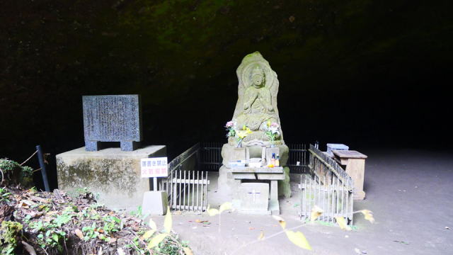 | 神社が建立されているかと思うと洞穴の横に「岩穴観音像建立」が建立されていました。 | ![]() |