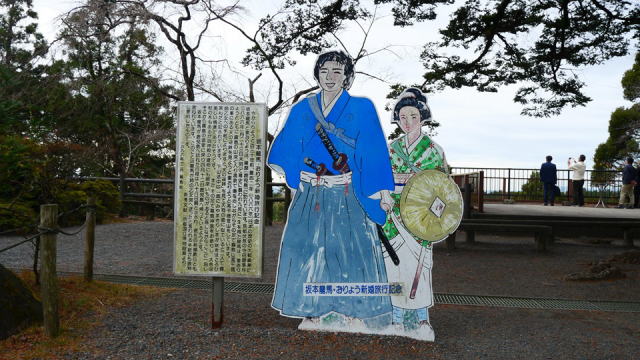 | 『坂本龍馬・おりょう新婚旅行記念』 京都伏見の寺田屋事件(1866年1月23日未明)で幕史に襲われ九死に一生を得た坂本龍馬は、西郷隆盛の勧めで、妻おりょうとともに霧島の山深い温泉で傷を治しながら、その足で霧島山(高千穂)の峯にある「天の逆鉾」を見ようと高千穂登山をしています。 |
