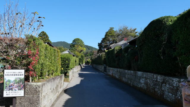 | NHK大河ドラマ「西郷どん」は、ここ知覧武家屋敷群で撮影が行われました。 幕末の町並みを再現する為に屋敷の電灯や消火器など撤去され撮影されたそうです。 |