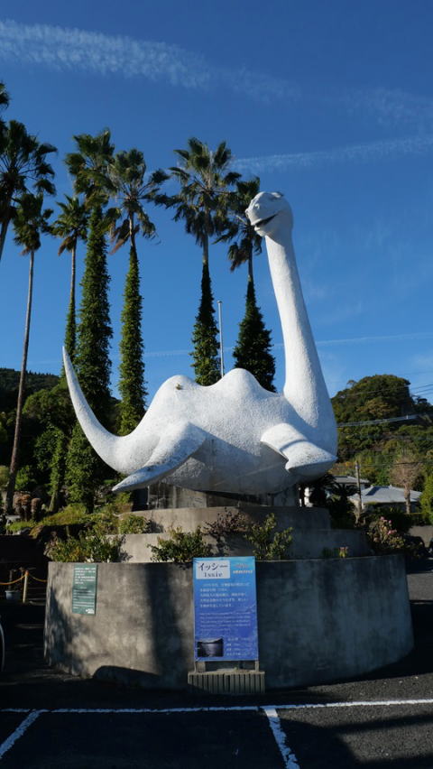 | 薩摩半島南部の開聞岳の東横に池田湖があります。周囲15Kmのカルデラ湖で九州最大の湖です。 池田湖畔は12月中旬にも関わらず“菜の花”が満開です。 池田湖パラダイスの駐車場に設置されている“イッシー”像 スコットランドのネス湖にネッシーが住んでいると、西暦565年からネッシーの存在を語り継がれ1933年に目撃情報や写真が公開された。 しかし、1993年におもちゃの潜水艦にネッシーの首の模型を取付て撮影したと偽証が判明した。 湖に住む2mにも成長する「オオウナギ」ではないかとも云われている。