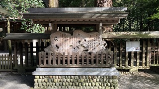 第一鳥居を潜った右手の天鈿女命像に人感センサーが備わっているのか前を通ると動いで迎えてくれます。 でも、誰もいないところで急に動かれるとチョット怖い気がします。 |