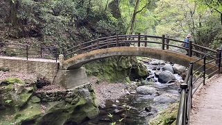 | 西本宮から天安河原へ向かう途中の岩戸川にかかる『太鼓橋』です。 この橋を堺に俗世界と聖域が隔てられた結界となっていると言われ、一番の”超絶パワースポット!”で橋の中央に立って、そのエネルギーを感じてください。 |