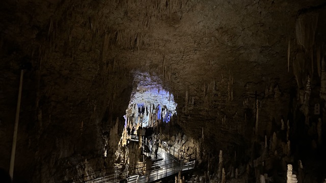 | 鍾乳洞に入ると、ドーム状の広い場所に出ます。 鍾乳洞は歩く距離が長いので時間にゆとりを持って行かれると良いと思います。また、滴がポタポタ落ちてくる場所があるのでタオルがあるといいです。所要時間はすべて見学して2時間以上は必要かと思います。 洞内に入ると最初にあらわれる巨大な空間「東洋一洞窟」には無数の大石筍が林立しており、奥に位置する白いロケットのような石柱・昇龍の鐘が特に見どころです。 |