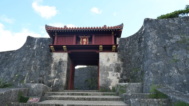 | 首里城を訪れるには”ゆいレール“の”首里駅“が最寄りと思いましたが、首里城の”守礼門“から入場するためには”儀保駅“が良いかと思います。 首里グスク “グスク(石垣)”の角が船舶の舳先の様に丸みがあり反り出している。 この『瑞泉門』は、外郭から内郭に入る門です。 |