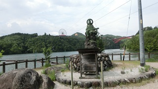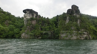 | 木曽川の中流の渓谷地。大井ダムから10Kmに渡るダム湖を遊覧船に乗って観光すると、川岸には奇妙な岩が沢山見ることができます。 獅子岩などの名前が付けられています。 |
