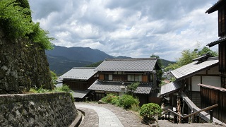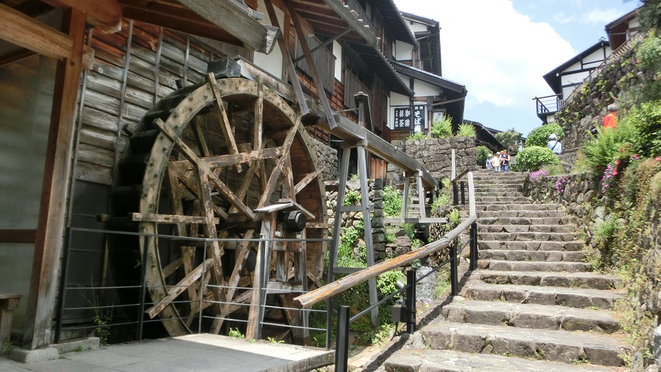 | 『木曽路はすべて山の中である』 木曽山脈の中山道に十一宿場あり尾張側の宿場は「馬篭宿」。 宿場の風景に情緒があり風情があり、建物は江戸時代の風景で風情があります。 大きい水車がゴトゴトと回転している風景がすきです。 中山道の馬篭から山の中から見渡す光景は大空と下界を望む雄大な景色になって楽しめます。 馬篭の駐車場は観光地用整備がされ散策者が多く訪れていました。 |
