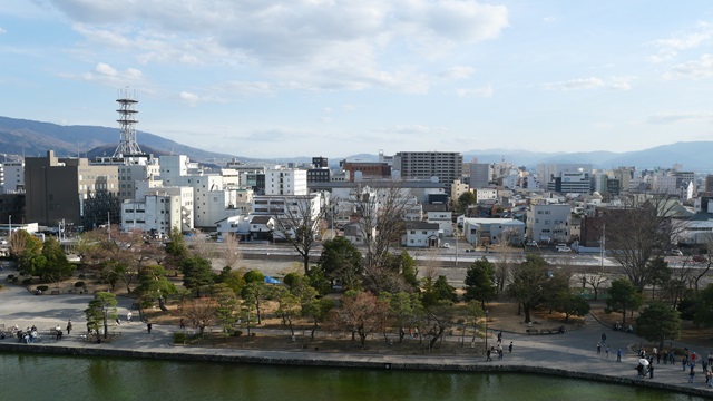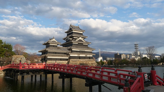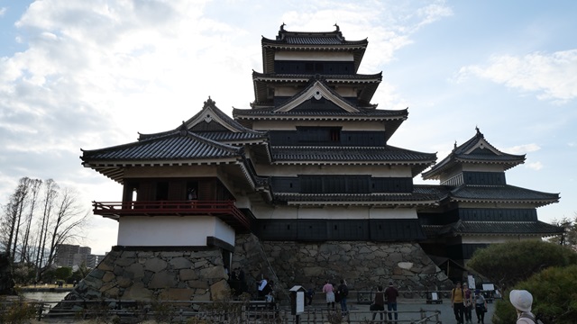 | 名古屋から木曽川の河岸をひたすら走る中央本線の“特急しなの”。 さくらの花が満開で、木曽山脈の山頂では残雪の景色。 松本城は現存天守閣の国宝だった。姫路城、彦根城、犬山城、松江城とともに国宝に指定されている。 テレビのバラエティで“日本の城”の特集番組があると必ず上位に選出される『松本城』。 松本城に訪れると、1対9の割合で外国人観光者が見えます。右を見ても左を見ても外国人観光客で松本市民より多いと感じるほどです。 でも、朝起きて松本駅まえのバスターミナルやJRの到着する列車を見ていると日本人の多さに吃驚します。 |