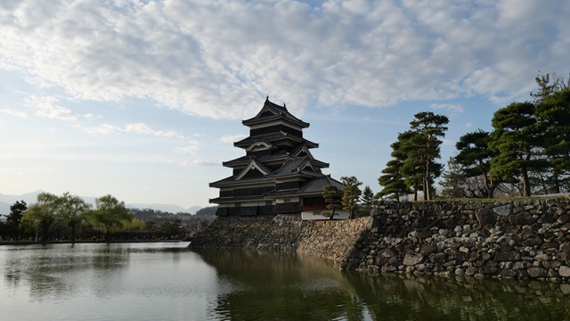 松本は飛騨山脈、木曽山脈、筑摩山地に囲まれた標高500mから800mの静かな盆地です。戦国時代には1550年に武田晴信(信玄)、1582年織田信長、1590年に豊臣秀吉から許され石川数正が入城した。