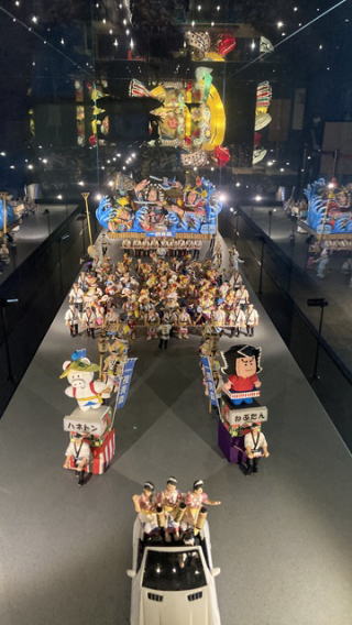 | ねぶたは大きな人形灯籠で”ねぶた師”達が製作されています。2023年の「優秀作」です。幅10mもあり、針金等で骨組みを組み和紙を貼り塗装されています。 |