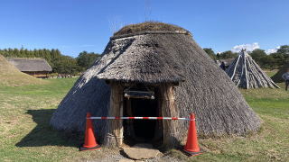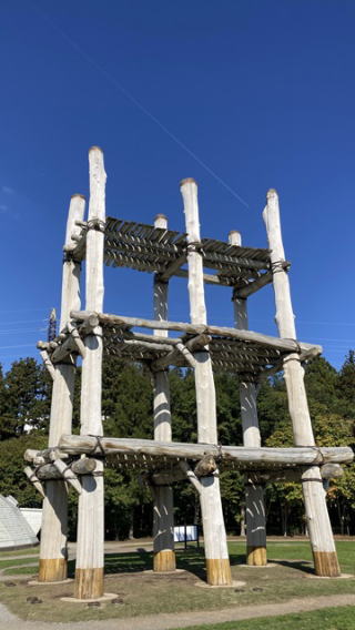 | 三内丸山遺跡は、日本の歴史で石器時代に次ぐ縄文時代の前期~中期(紀元前3,900~2,200年)の大規模集落(ムラ)跡で、縄文時代の住居や建物が復元されています。 動物や魚の骨、植物の種子、漆器などのゴミ捨て場や埋葬された墓があり村を形成されていた。 狩猟民族から土器が作られて食料を保存できることから定住される。 遠い昔に「縄文時代」を習ったが、記憶に残っているのは、定住民族で、木の実、貝そして狩猟して食料得て暮らしてきた。土器を作り食料を保管してきた。 高床式校倉造りと思うのですが、奈良公園にある校倉造りが最古と聞いていましたが、縄文時代にも校倉造り技法が存在していたとは。 住居は、『竪穴式住居(復元)』、『大型竪穴式住居(復元)』が建っていました。 子供の頃、近くの森で作っていた”秘密基地”に似ています。落ちている材木やつるで組み立て葉っぱを屋根にした小屋みないなものです。 |