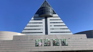 | 青森観光物産館『アスパム』。 正三角形をした13階建てのビルです。物産館と云うから特に興味なく外観写真を撮影して通り過ぎましたが、後からパンフレットを見ると展望台があり陸奥湾や山々が展望できる事を知り、観光すればよかったと反省。 |