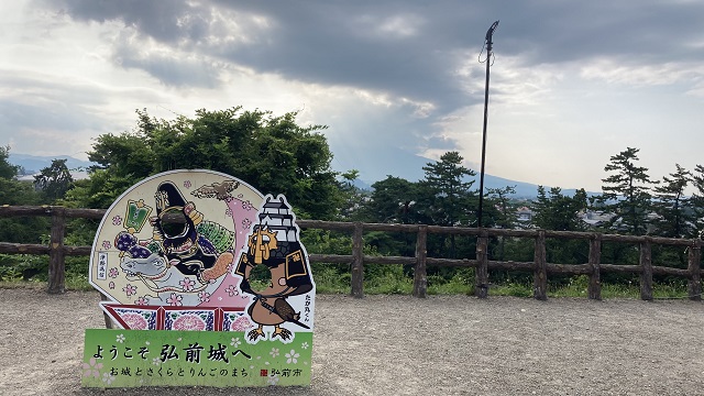 | 城内から北方を臨むと岩木山が見えるのですが生憎の曇り空で、岩木山の裾野が少し見えるだけでした。 青空に映える岩木山を撮影したかった。 |