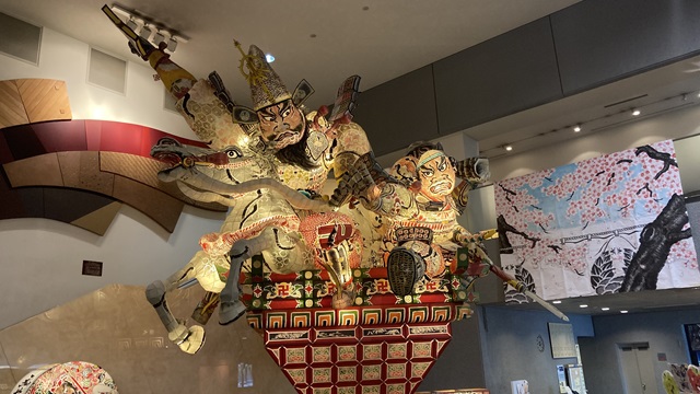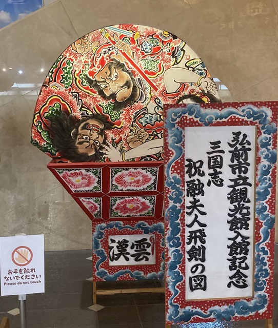 | 弘前城三の丸大手門前に『弘前市立観光館』があります。 弘前の”ねぷた”、青森の”ねぶた”、五所川原の”佞武多”と津軽三大ねぶたの一つです。 弘前の”ねぷた”には、「扇ねぷた」と「組ねぷた」があり武者絵と見送り絵が描かれてます。 「ヤ―ヤード―」の掛け声とともに、80台ほどのねぷたが練り歩く夏祭りです。 |
