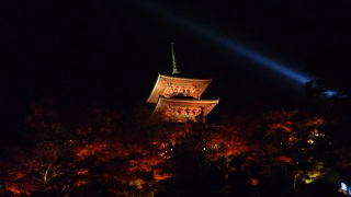 | 夜間照明の時に訪れた時は、観光客で境内を行列で進み静止して撮影できない状態で撮影した渾身の一枚です。 |