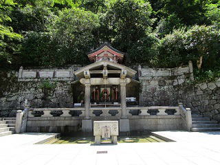 | 音羽山から湧き出る『音羽の滝』は願い事を叶えてくれる三本の滝です。正面から見て右端は「延命長寿」、真ん中は「恋愛成就」、左端は「学業成就」とされています。「延命長寿」を祈願しつつ撮影しました。 | ![]() |