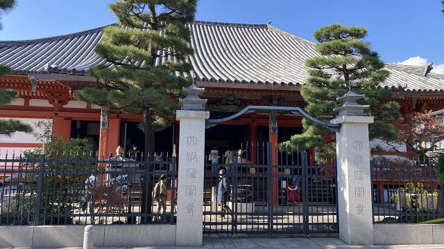 | 轟門は朱色ではなく木造の地肌で風光明媚で面持ちがあります。轟門を潜り回廊を進んで本堂へ向かいます。 | ![]() |