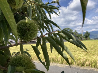 | 9月13日の初秋。 穴太寺の周囲には田圃があり、畦道には彼岸花が咲き栗の木には大きな毬栗が実ってます。 秋が進めば近くの”亀岡コスモス園”で賑わいがあるでしょう。 |
