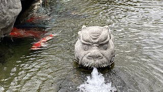| ◆池にカメが居ませ~ん。かわりに龍がいました。 龍が水面から顔を出し、火を噴いていました。カメは龍が住んでいるから逃げ出したのかな?。それとも冬眠しているのかな?。 1月中旬に参拝したら梅の花が一つ二つ咲いて、境内のカフェで寒さを吹き飛ばす暖かい”おぜんざい”を頂いて帰りました。 |