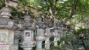 | 清め橋を渡り終えると『知恵の輪』前に出ます。 『知恵の輪』 本堂をお参り、そのご加護を頂けてえから、この知恵の輪を歩きます。 歩き方は看板に書かれています。 入口から入り時計方向に石柱がある中心に向かって7周歩き、次に反時計回りに7周歩いて入口に戻ります。途中、石に座って瞑想するもよい。 更に参道を進むと石灯篭が並び石灯篭にはミニダルマが置かれています。 不思議に置かれいますが、落ちたりしたダルマは見当たりません。 |
