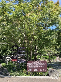 | 開祖は日本料理の四条流包丁式の創始で包丁塚があります。 1月18日に寒い日の参拝ですが、一輪の梅の花が咲いていて春が待ち遠しく、茶店『ポタラ』で温かい「ぜんざい」頂き帰りました。 |