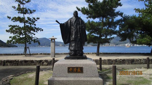 | 厳島神社と云えば平清盛です。1151(仁平元)年に平清盛が『安芸守』(現広島県の西半分)になり、厳島神社とのかかわりが多くなった。 厳島神社は、593年に地元の豪族が推古天皇の勅許を受けて建立されたそうです。現在の社殿は平清盛が1168年頃に造営したが焼失し1243年以降に造営されたものだそうです。 |