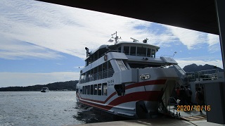 | JR宮島口駅の桟橋から厳島へ行くフェリーが運行されています。 日本三景の『安芸の宮島』。 安芸の国の厳島に厳島神社というお宮さんが建立されているから「宮島」と呼ばれているそうです。 |