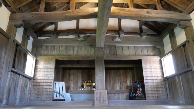 | 天守(国指定重要文化財)は、木造本瓦葺き二層二階の建物で、内部一階には囲炉裏と装束の間が、二階には広い空間に城の守護神を祀った御社壇があります。古い木組みの構造の中に、美しい手斧と槍鉋の跡が見られます。 天守は籠城するために建設され生活をするところではない。現存天守ならではの体験ができます。 |