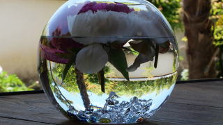 縁側に、ガラス容器に水をお入れ底にガラス片が入っていて切り花を浮かべてあるのが幾つか置いてありました。 | ![]() |